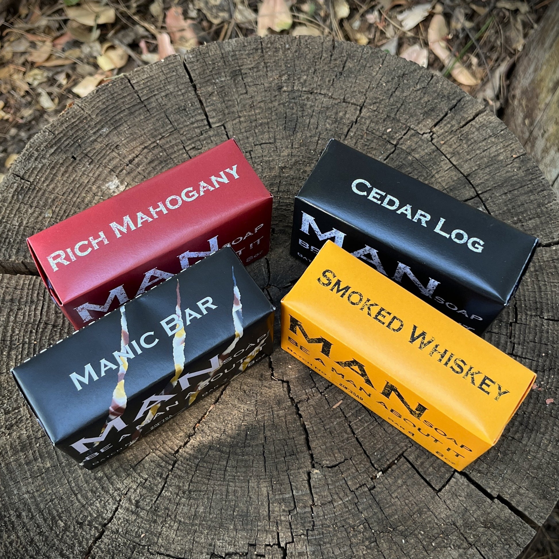 This bar of manly yet excellent for us Fems too is hands down an amazing bar of freshness I have used in a long time. The smells are not to musk they are instead a soft winter, holiday, outdoor freshness smell I cant quite explain yet somehow its perfectly mellow and soothing. The bar is HUGE and I cut it up in half. It easily suds up on the body yet has this extremely soft not oily moisture retained left behind on my skin. I use it during shaving to and it is THE BEST no nicks or cuts and leaves my skin soft. I hope they consider expanding their smells to us ladies as well (or summer smells for men) in their products like fruits or soft flower smells or cucumbers and lavender I don't know but I have a feeling they will come up with soothing great and I look forward to it. Who knew stopping at a booth at the fair would change my shower routine for the better!!