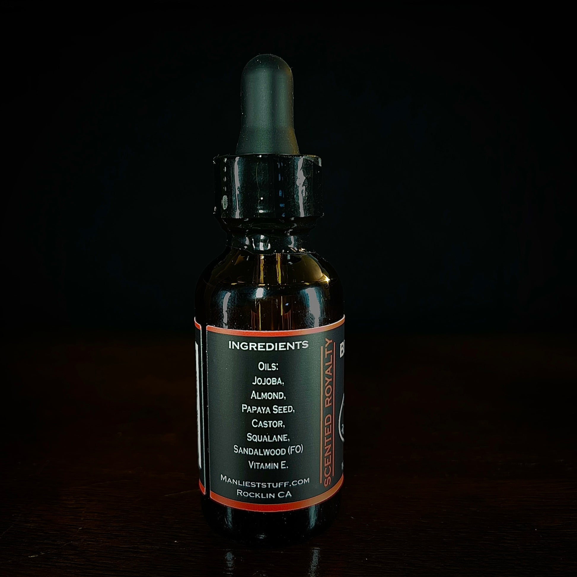 Want to feel like a regal prince, decked out in all his finery, with a fierce beard that radiates a delightful scent of sandalwood? Then this luxurious oil is for you and you'll have everyone wondering what is coming off of your chinny chin chin. This oil has a mild scent of sandalwood and will leave your beard feeling hydrated and skin feeling moisturized.